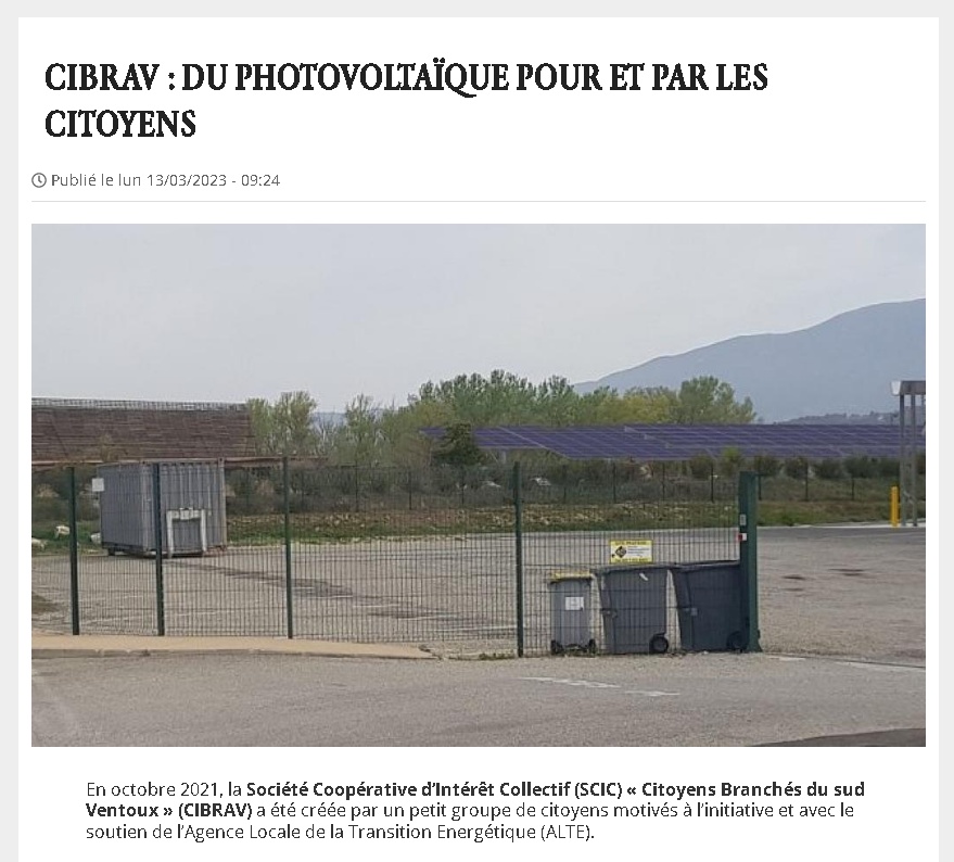 Le journal Sans Transition cite CIBRAV