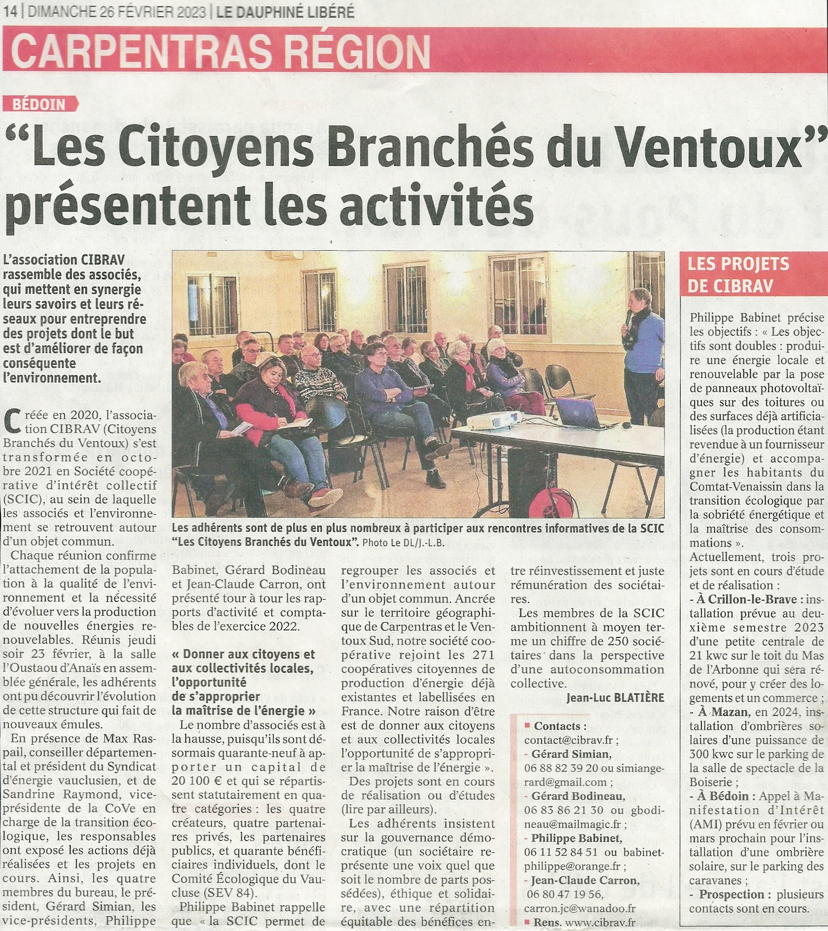Le correspondant local de Vaucluse Matin était présent à l’assemblée générale de CIBRAV, le 23 février.